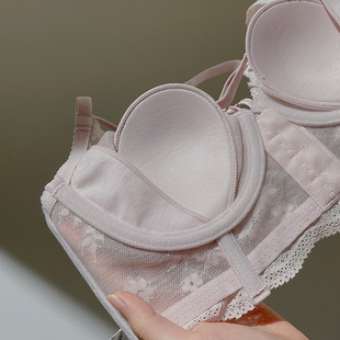好奇蜜斯芭比联名水钻内衣女聚拢小胸显大无钢圈文胸罩套装 性感粉