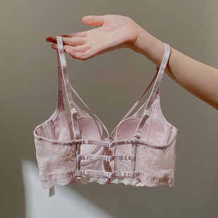 好奇蜜斯无钢圈内衣女聚拢小胸显大蕾丝文胸罩套装 性感夏防下垂白