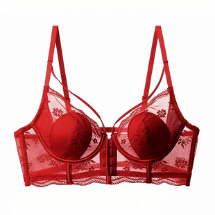 前扣超薄款 兔耳朵防凸点大胸显小蕾丝文胸罩性感美背本命年内衣女