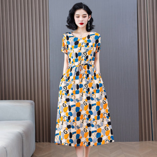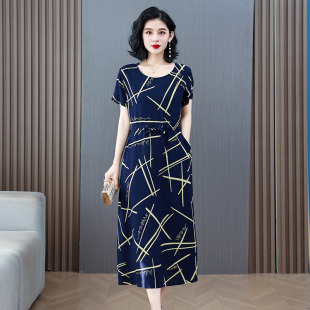 2026新款 气质妈妈碎花小个子显瘦 初夏穿搭上海棉绸连衣裙年轻款