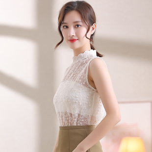 毛衣罩衫 打底背心女衬衫 镂空洋气假领子 立领蕾丝无袖 2025春秋新款