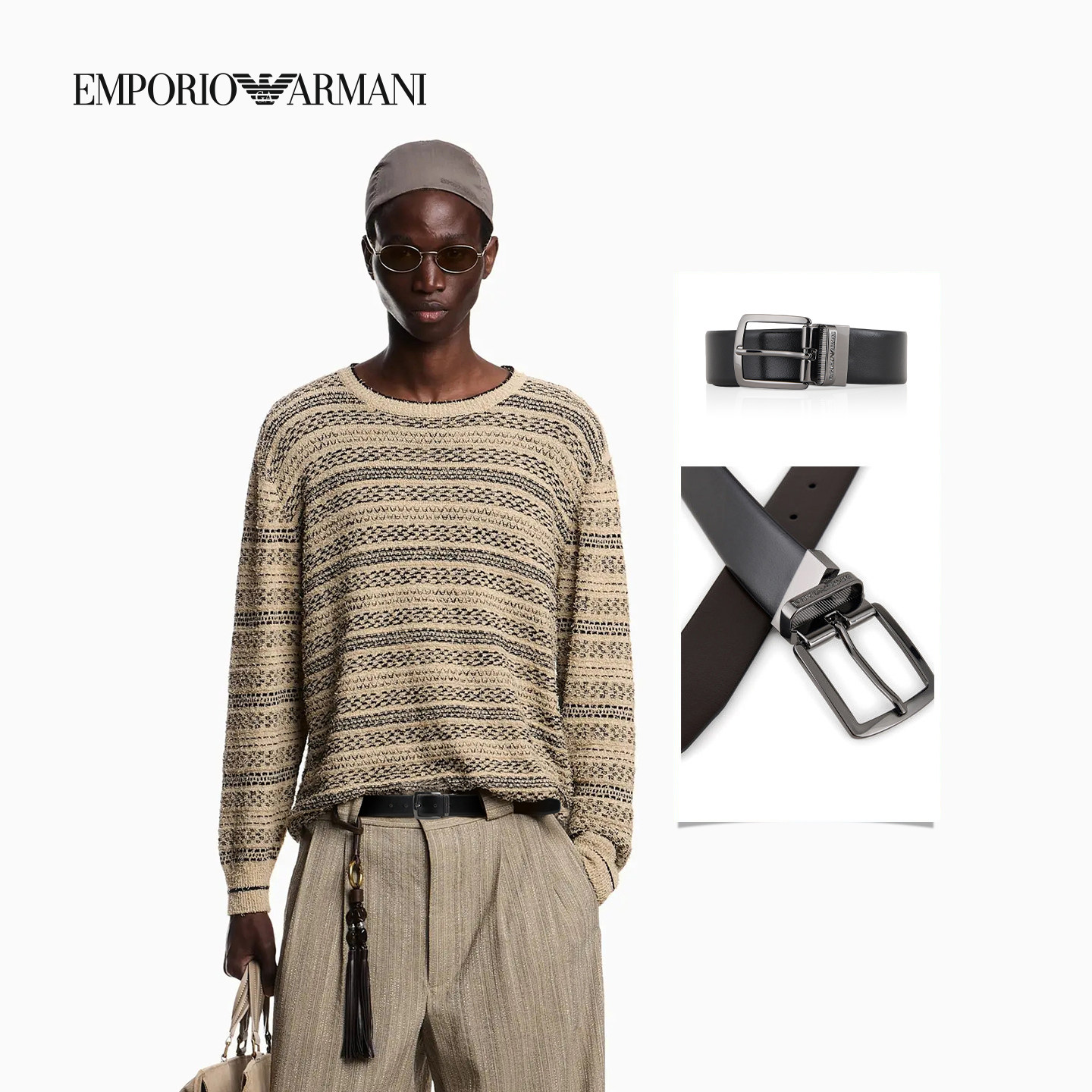 双面老钱风商务通勤针扣腰带宽3.5CM 阿玛尼男士 EMPORIO ARMANI