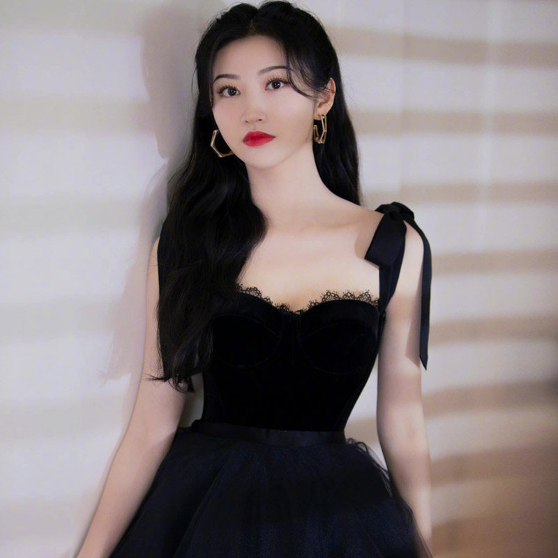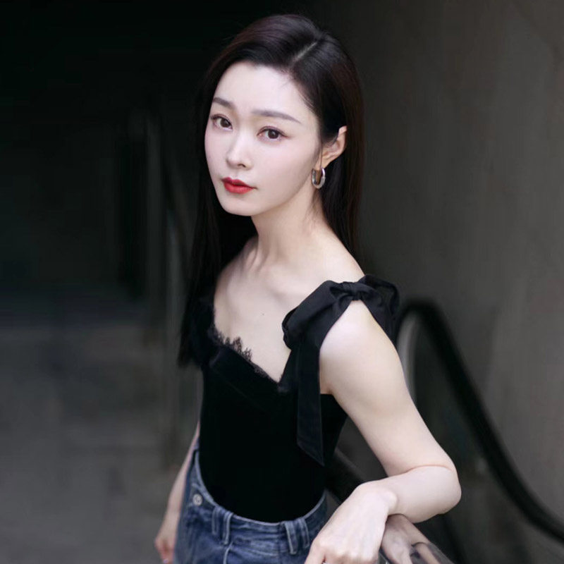 宋轶景甜同款 黑色蝴蝶结鱼骨吊带背心女丝绒内搭外穿气质辣妹上衣