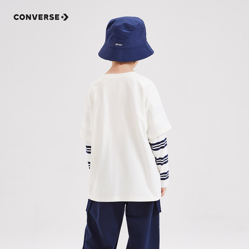 男童T恤大小童宝宝假两件纯棉上衣 T恤2026春秋新款 匡威儿童装 长袖