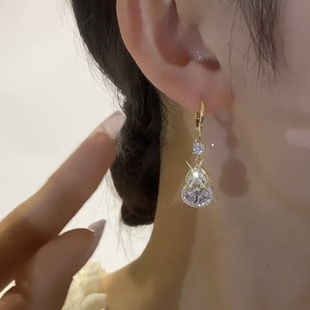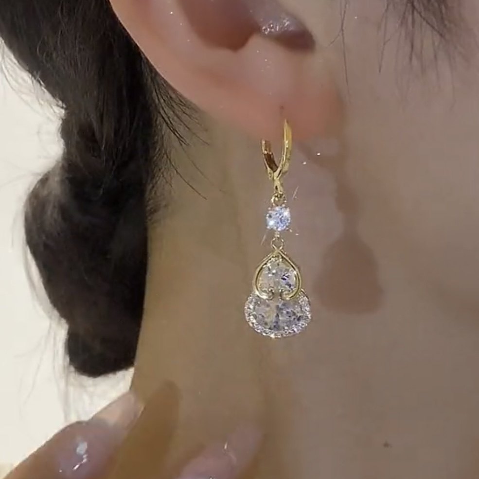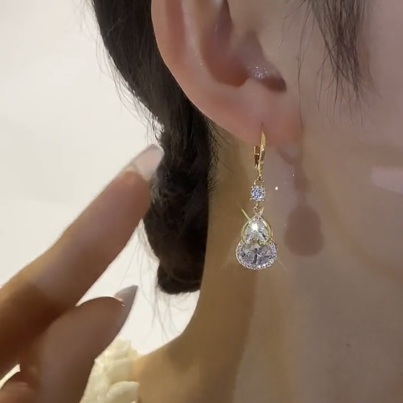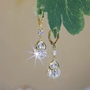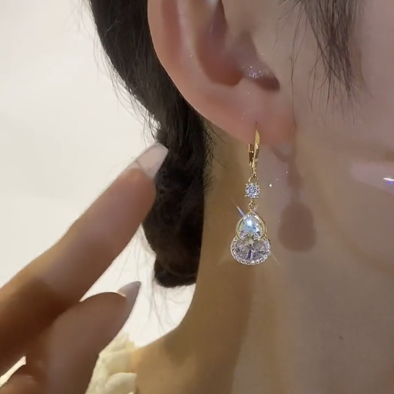 高级感锆石葫芦水滴形耳扣简约大气耳环时尚 潮 气质耳饰2023年新款
