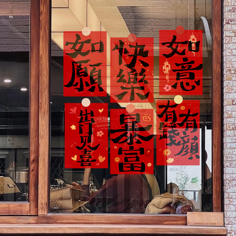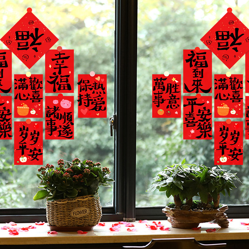 福字窗花新年装 饰对联玻璃门贴静电贴纸春节马年场景布置氛围公司