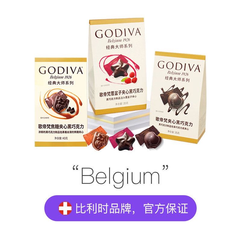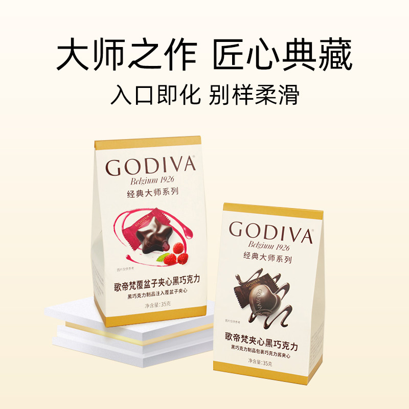 大师系列黑巧覆盆子夹心巧克力5颗装 GODIVA歌帝梵经典 35g 自营