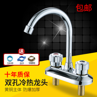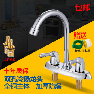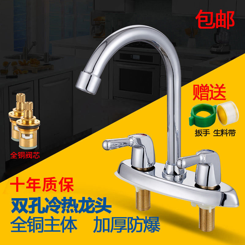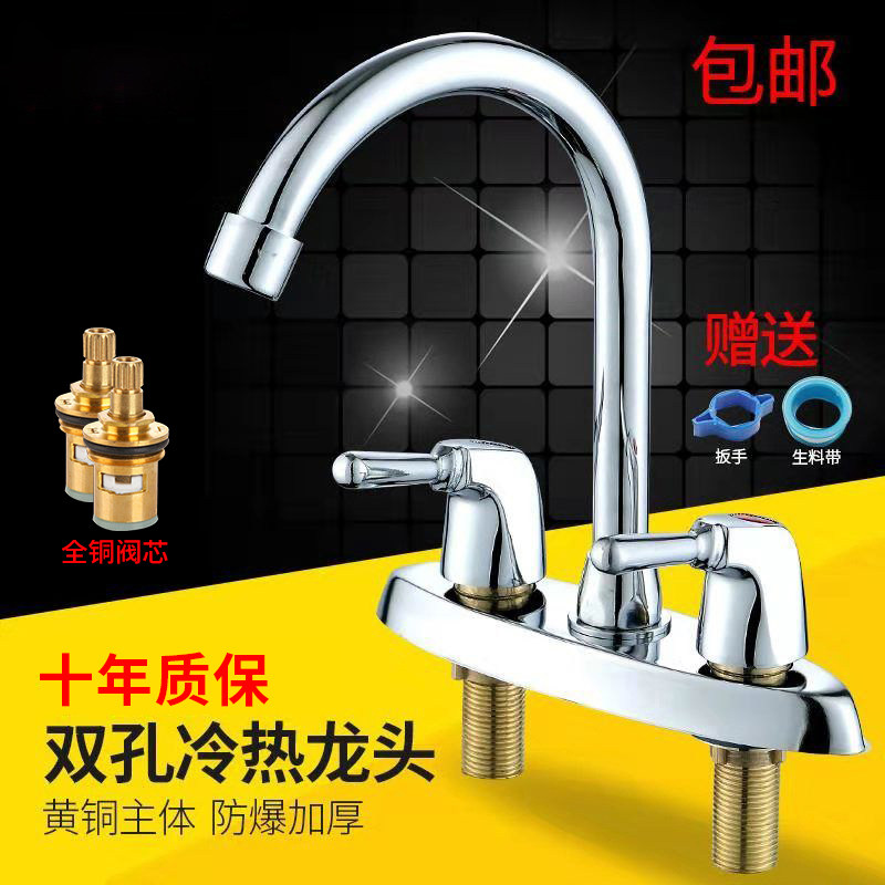 全铜洗脸盆菜盆水龙头冷热双孔面盆台盆厨房水龙头卫生间双用开关