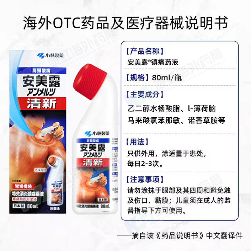 日本小林制药镇痛消炎剂清新安美露缓解肌肉肩膀酸痛镇痛80ml港版