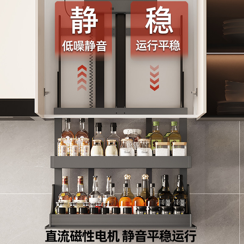 厨房吊柜电动升降拉篮智能吊柜电动升降调味拉篮自动垂直升降拉篮