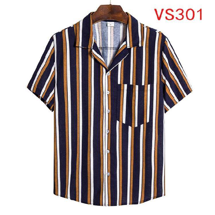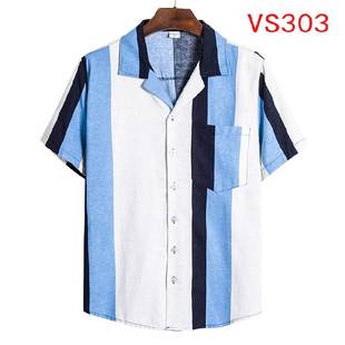 衬衫 男2020新款 休闲衣服 外贸欧码 潮流半袖 条纹短袖 韩版 衬衣 夏装
