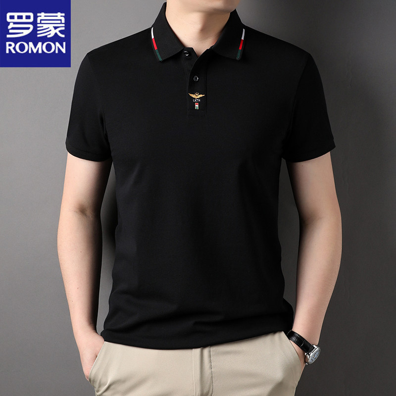 短袖 POLO衫 翻领刺绣韩版 上衣宽松半袖 潮 休闲夏装 罗蒙纯棉T恤男士