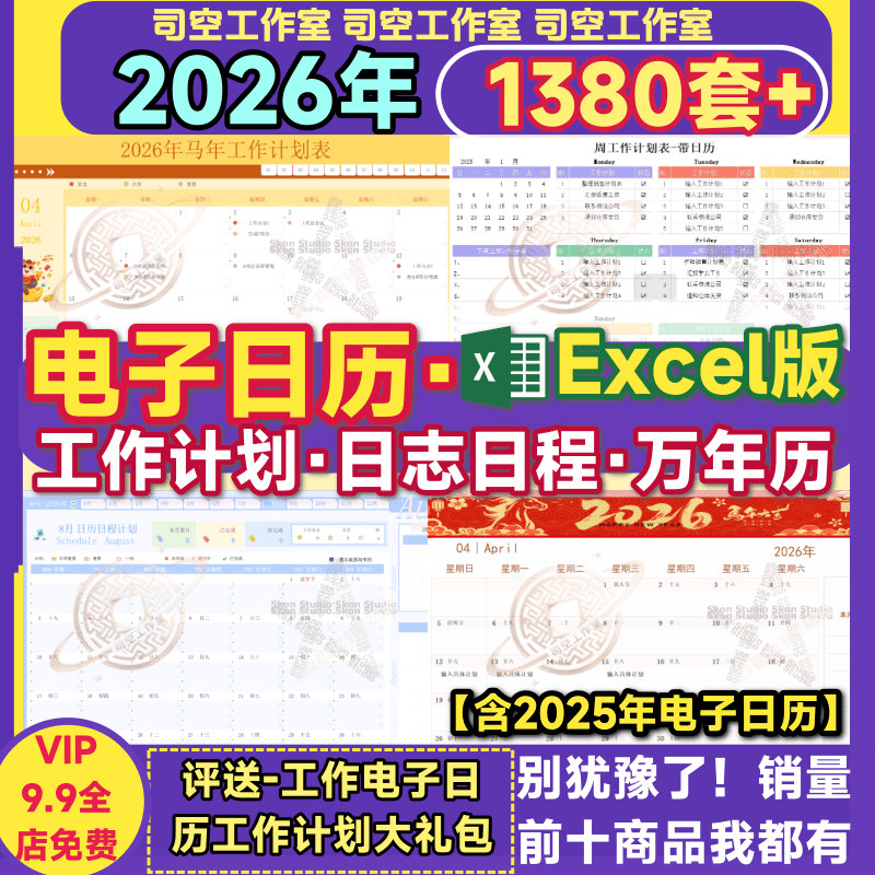 2026年工作计划表电子版 日历excel马年进度跟踪日历月计划日程表