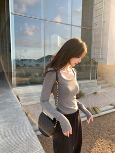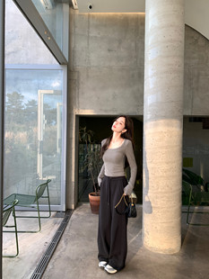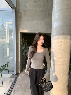 显瘦上衣女长袖 alex 弹力棉修身 U领纯色打底衫 保暖衣 stevens