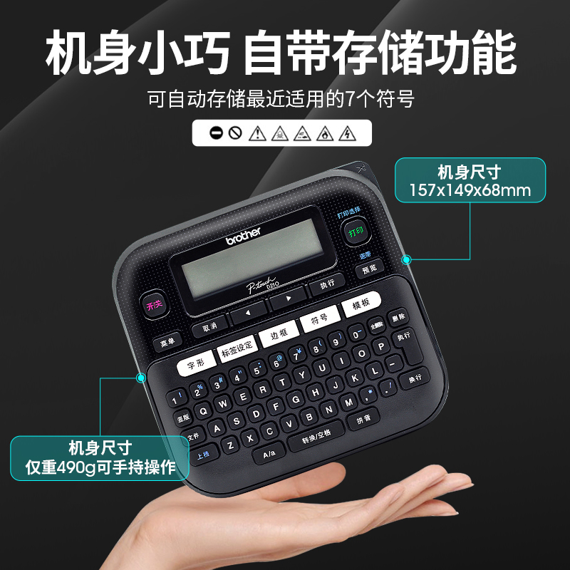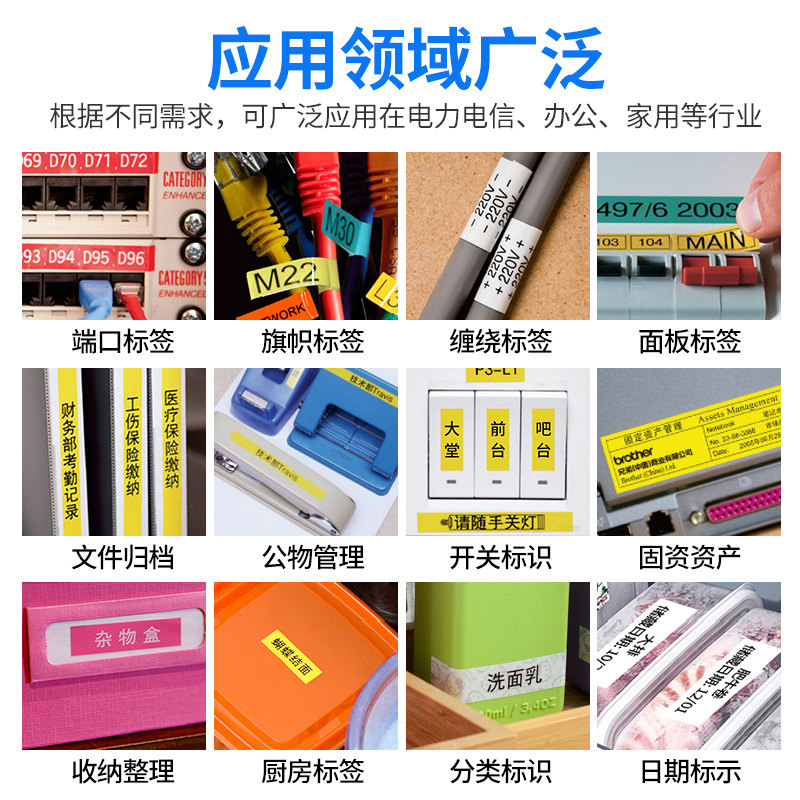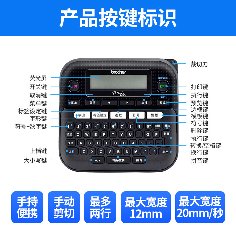 小型线缆电力网线家用办公固定资产酒店工牌铭牌不干胶贴纸 E115B手持便携式 Brother兄弟标签打印机PT D210