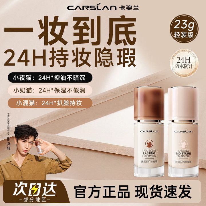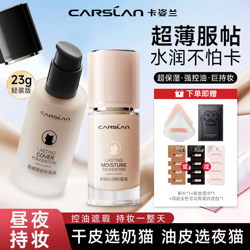 卡姿兰粉底液持久不脱妆女遮瑕bb霜女干皮水润小奶猫官方正品 23g