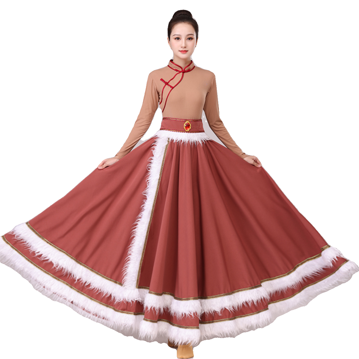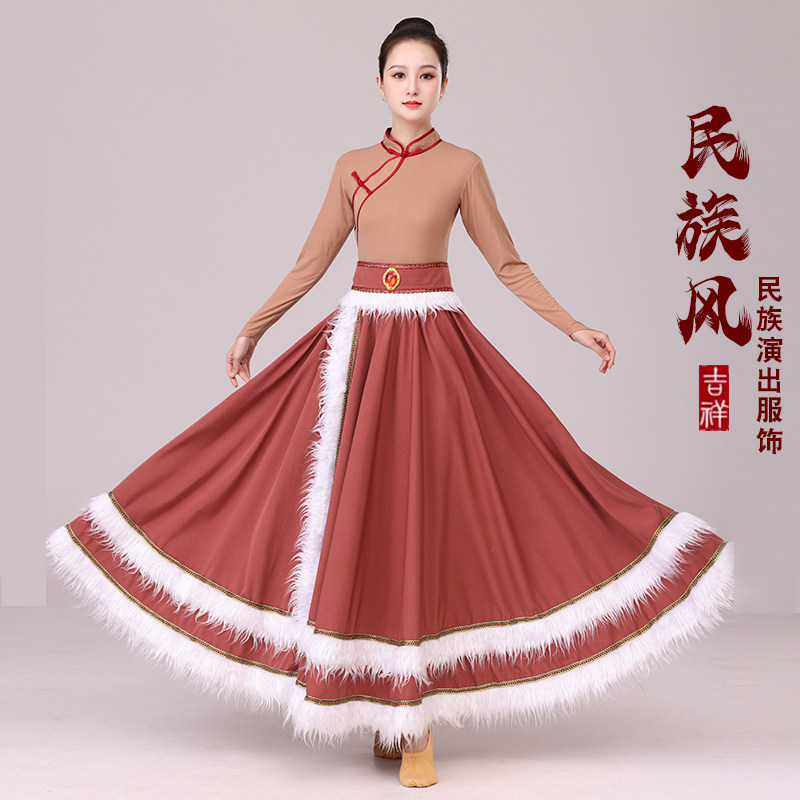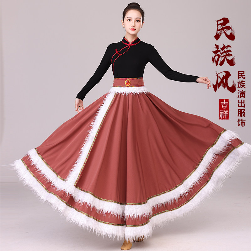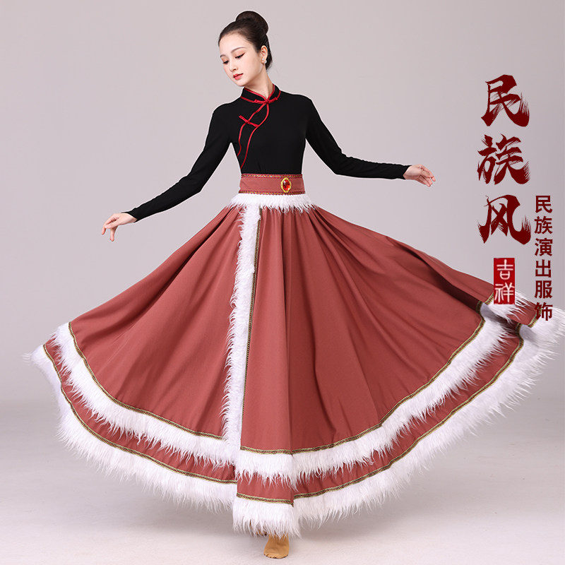 李冠老师同款 大摆裙广场舞 藏族舞蹈服女艺考半身长裙民族舞藏式