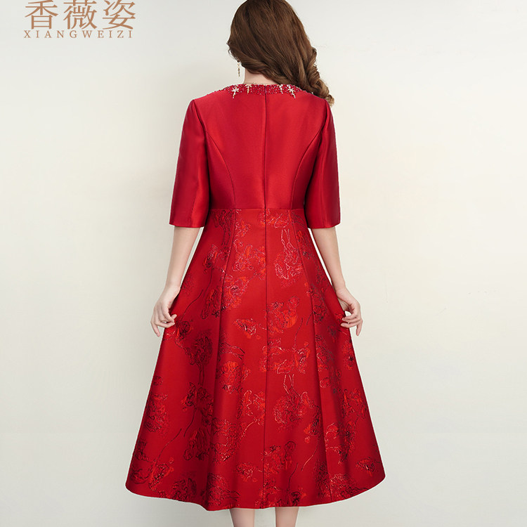 礼裙 喜妈妈婚宴礼服高端轻奢高级感大码 红色连衣裙长款 2026女春季