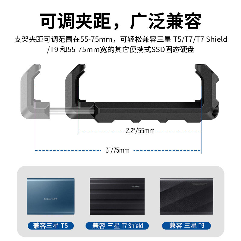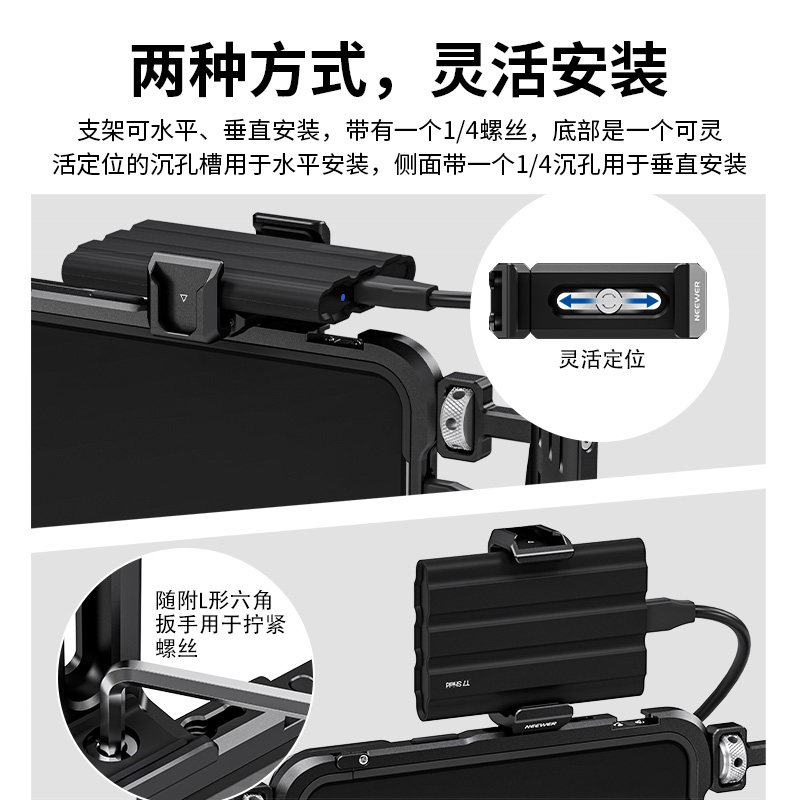 T9移动硬盘伸缩夹支架存储盘夹手机相机兔笼冷靴夹摄影拓展配件 NEEWER 纽尔SSD固态硬盘夹子适用三星T5