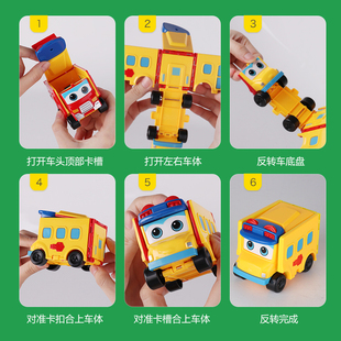 百变校巴变形玩具车儿童小汽车玩具变形车小车巴士男孩反反车礼物