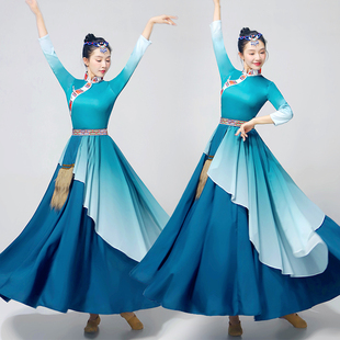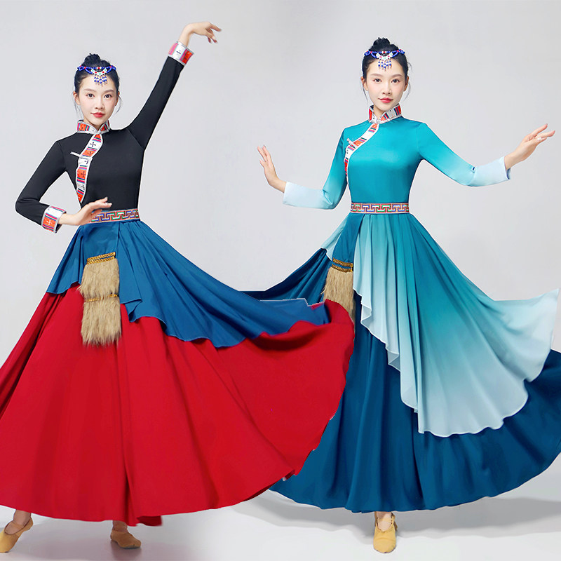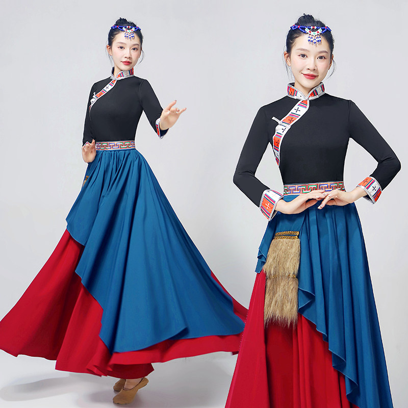 新款 女广场舞练功裙表演长裙民族学生艺考练习裙 藏族舞蹈演出服装