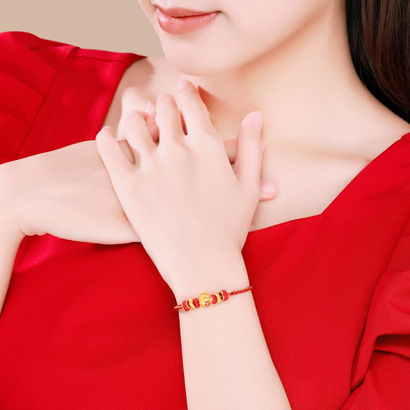 周六福黄金转运珠女足金定价财运猫手绳手饰路路通送女生礼物官方