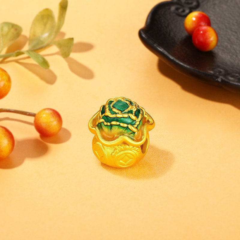 周六福黄金转运珠5d硬金定价九华山系列可爱谛听路路通炫彩珐琅