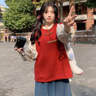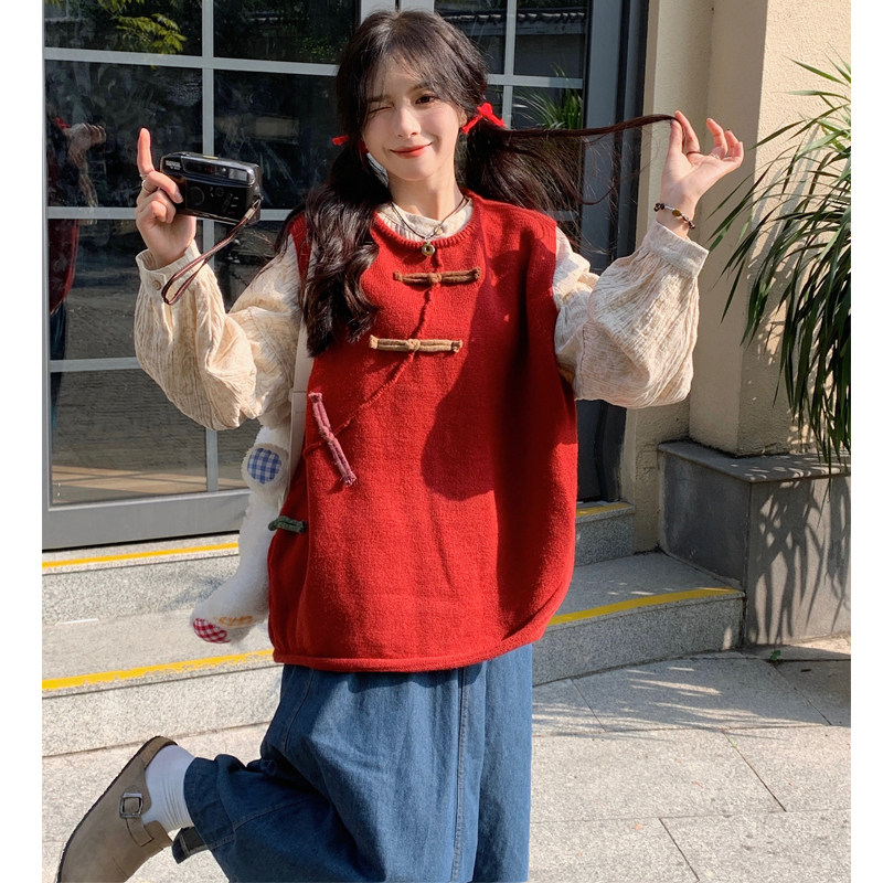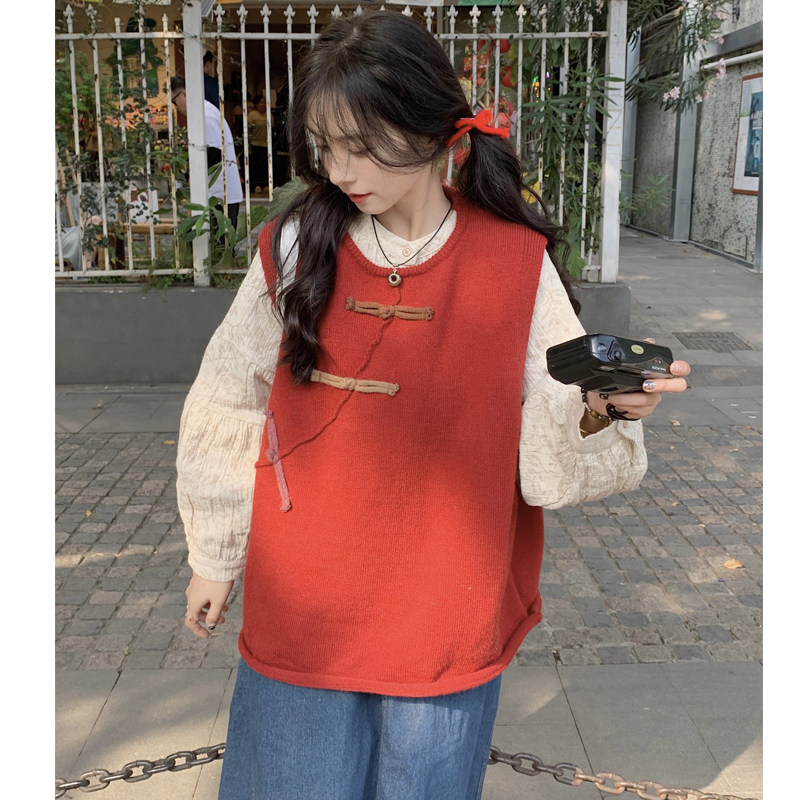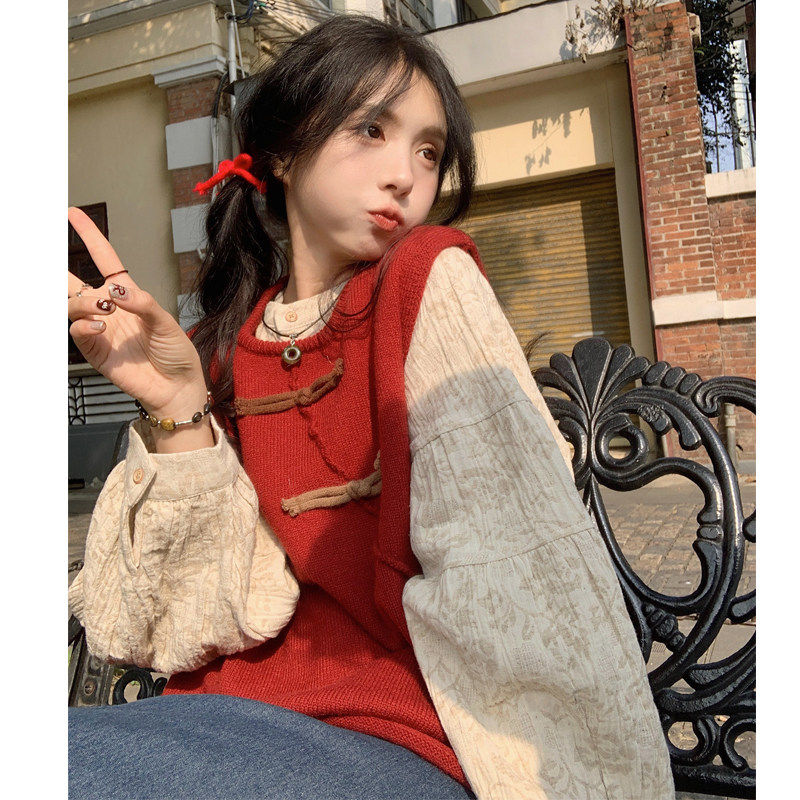 胖mm复古设计感盘扣针织马甲宽松提花衬衫 2025秋季 两件套 女装 大码