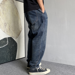 男直筒宽松百搭高街锥形裤 休闲痞帅水洗复古做旧牛仔裤 子 美式 秋季
