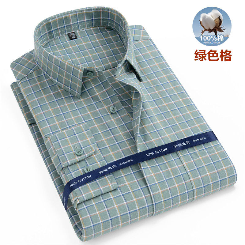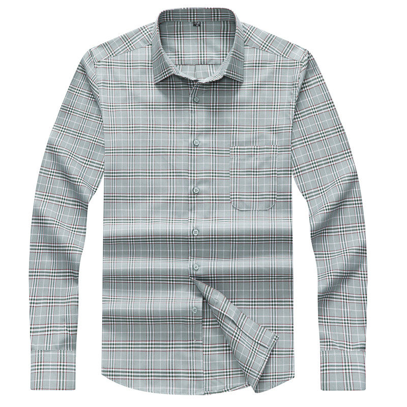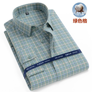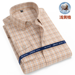 商务休闲胖子大码 男士 纯棉衬衫 长袖 宽松免烫格子衬衣 加肥加大秋季