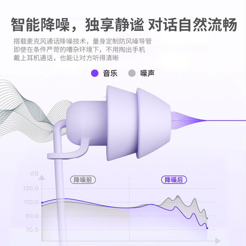 线控半入耳式 带麦克风线控3.5mmtrs插头不支持降噪普通有线耳机