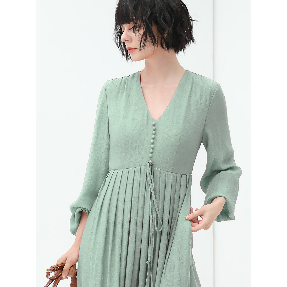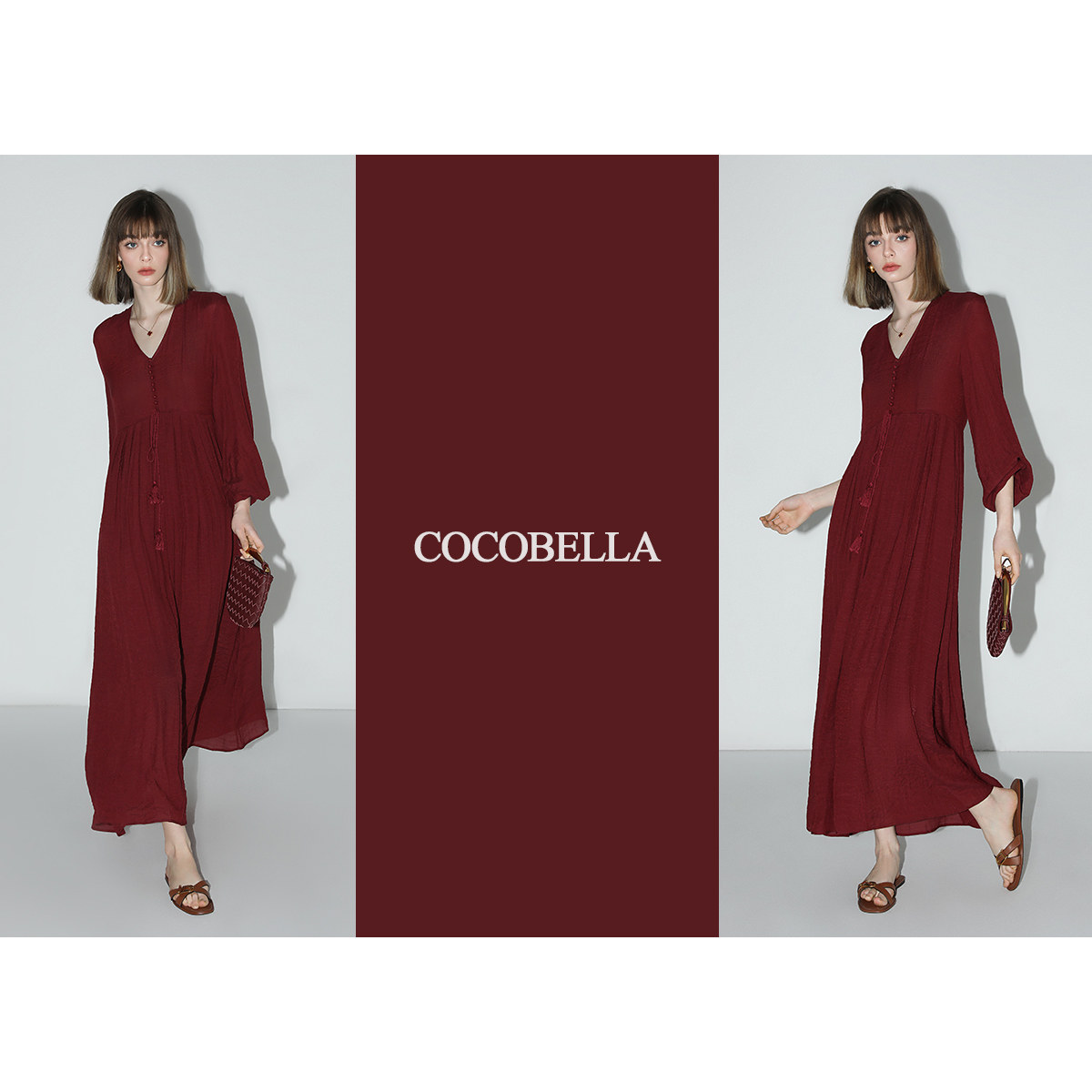 COCOBELLA法式 清仓 优雅大摆V领连衣裙度假沙滩长裙NFR16 断码