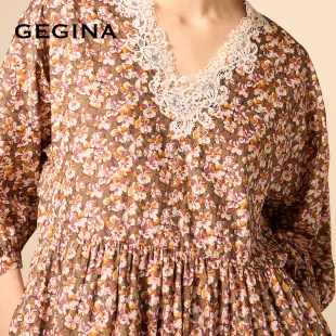 GEGINA吉吉娜法式 度假风Liberty纯棉印花蕾丝复古连衣裙商场同款