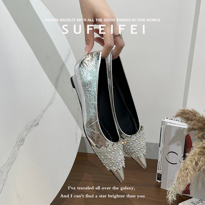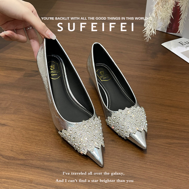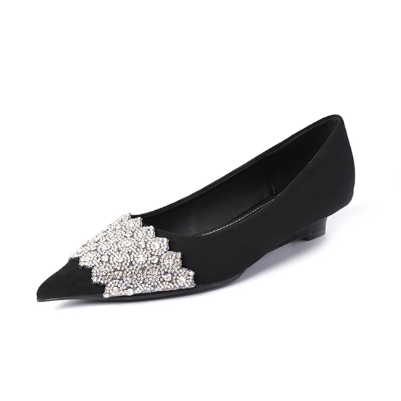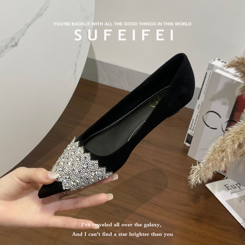 女尖头低跟水钻百搭职业黑色单鞋 苏妃妃2026年春新款 坡跟小高跟鞋