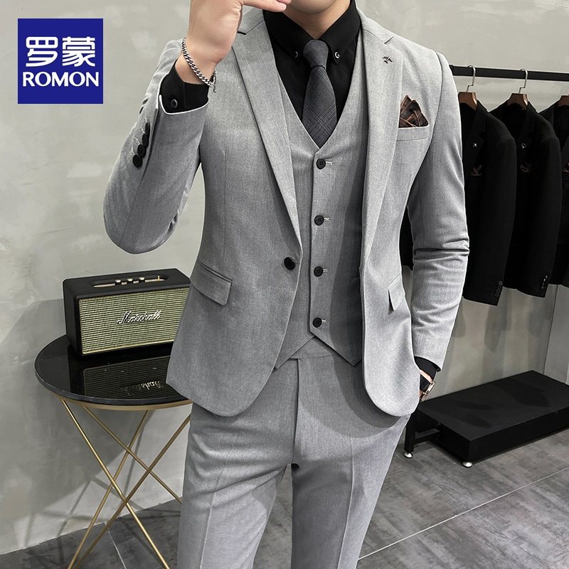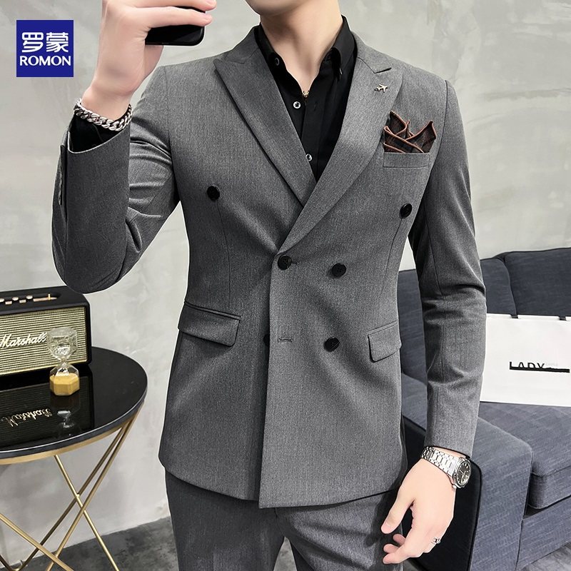 新郎西装 商务休闲正装 结婚礼服高级感外套 男士 罗蒙双排扣西服套装