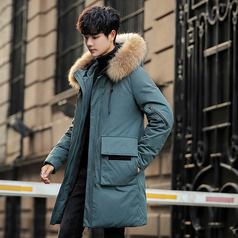 帅气青年外套 宽松连帽大毛领潮流韩版 YR925P100 羽绒服男士 中长款