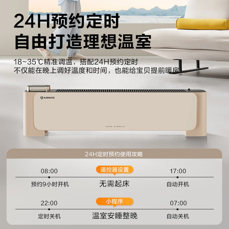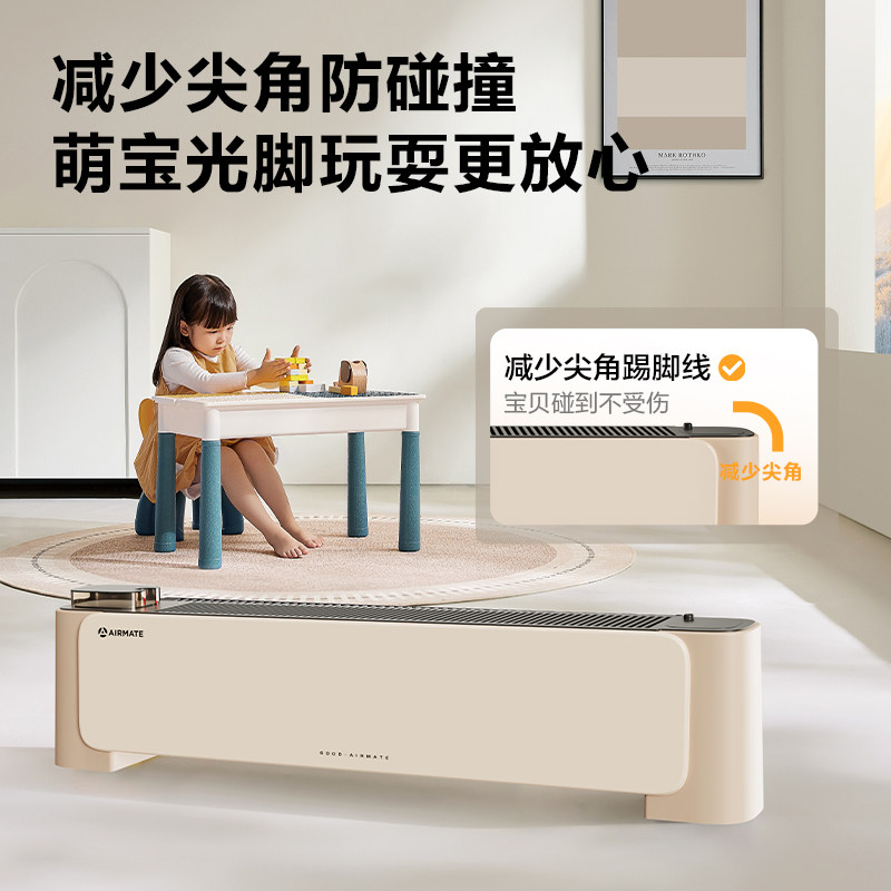 暖风机 大面积2025新款 美 踢脚线取暖器家用石墨烯电暖气语音冬季