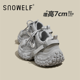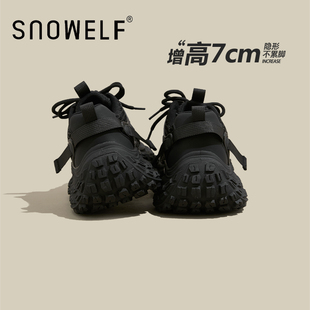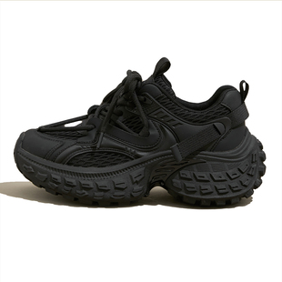 秋冬运动休闲单鞋 时尚 女款 女增高2025新款 子 黑武士加绒厚底老爹鞋