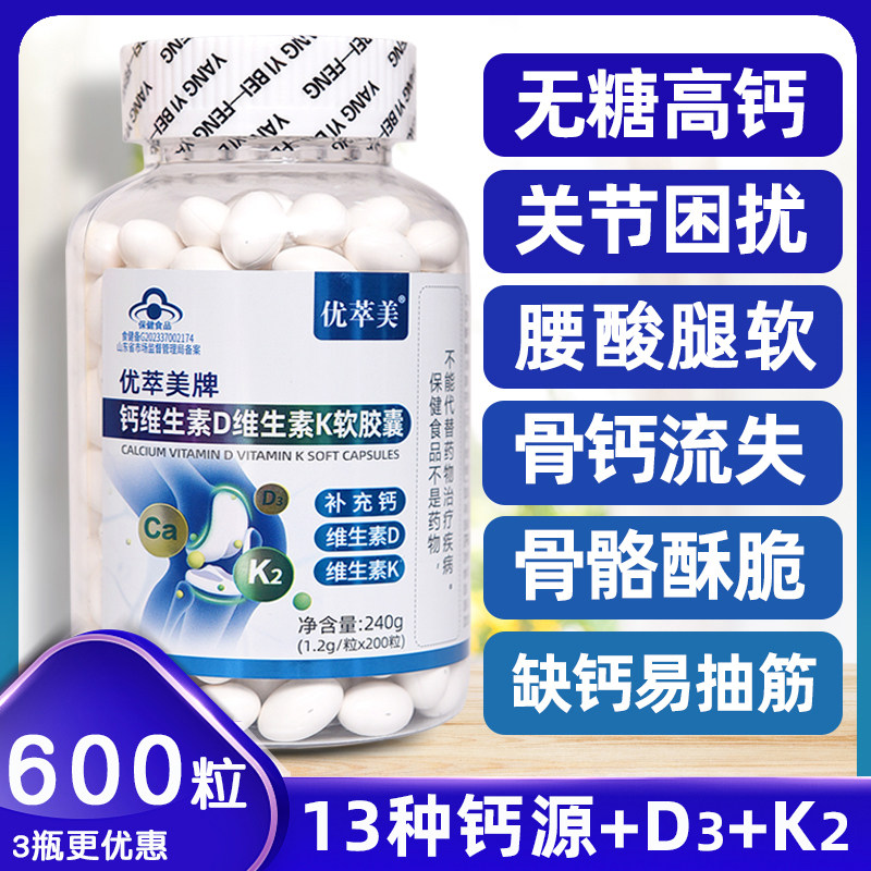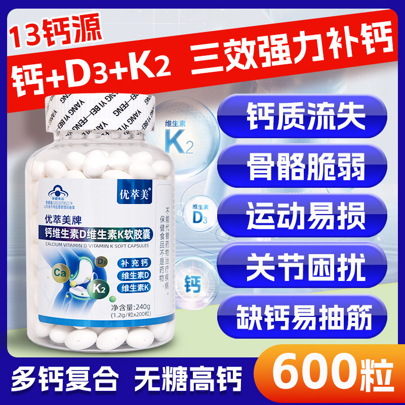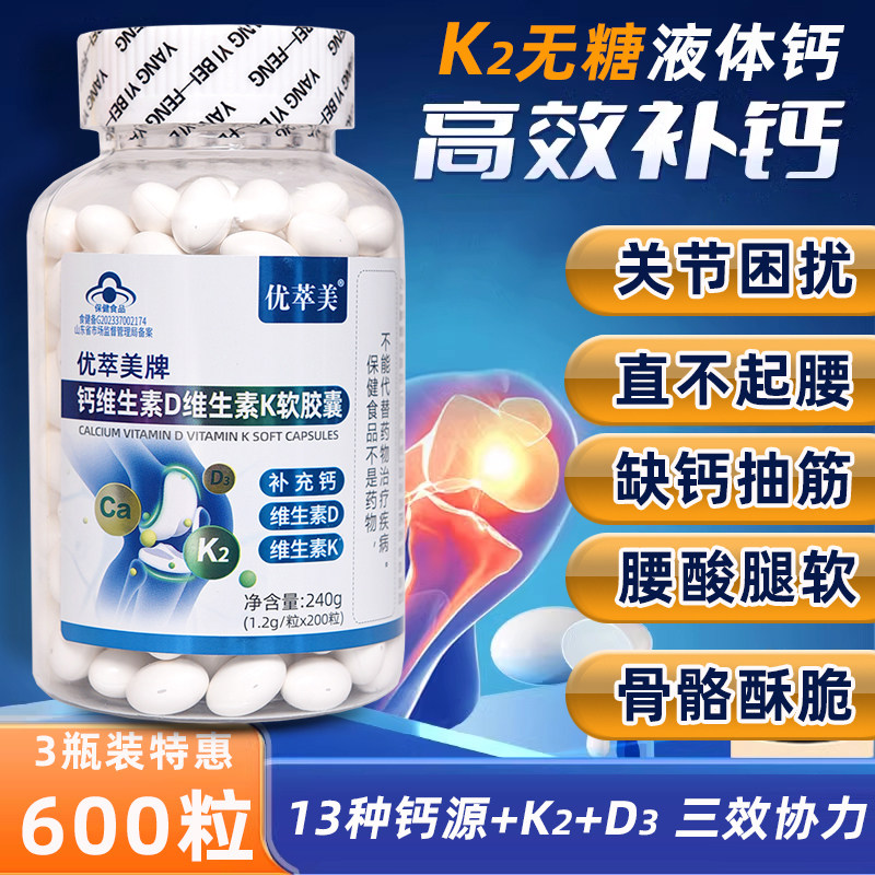 液体钙DK成人男性女性维生素d3K2钙片中老年中年人补钙软胶囊正品