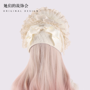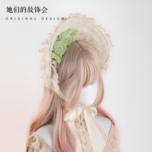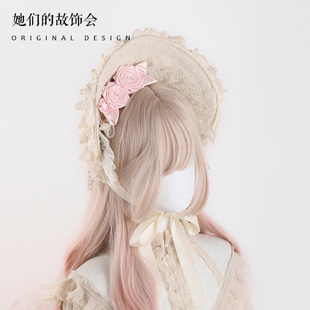 原创Lolita手作蕾丝波奈特BNT帽子甜美可爱玫瑰蝴蝶结发夹一体夹