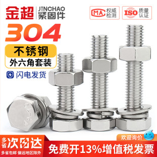 外六角螺栓304不锈钢螺丝螺母套装 大全螺杆M8M10M12M16