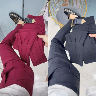 新款 弹力老爹休闲裤 哈伦裤 靴裤 女高腰显瘦九分束脚马丁裤 2025秋季