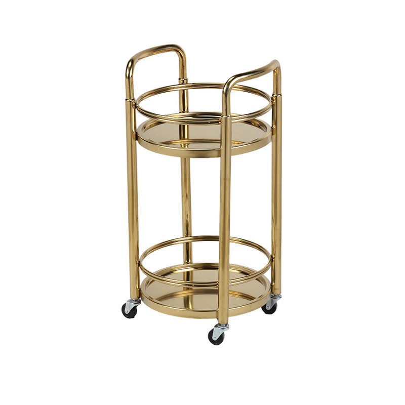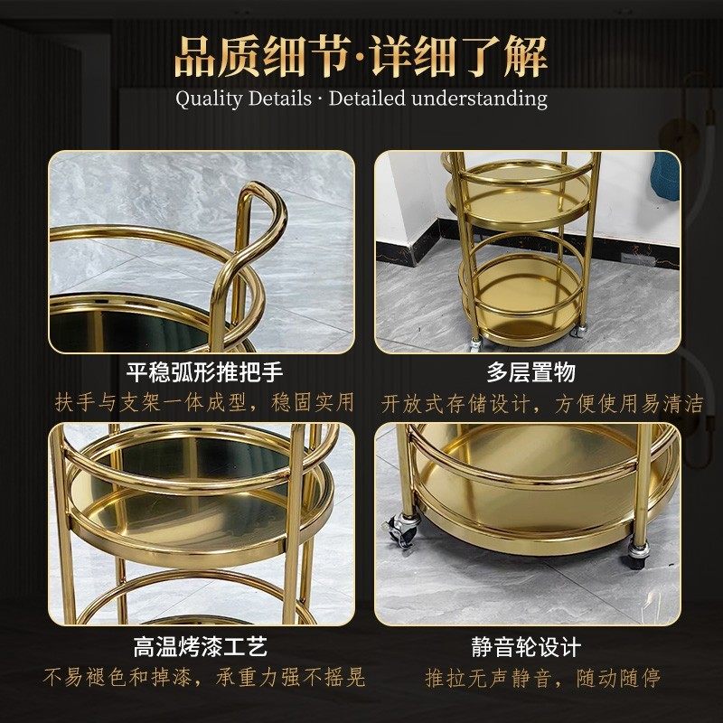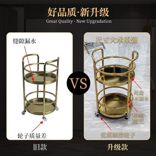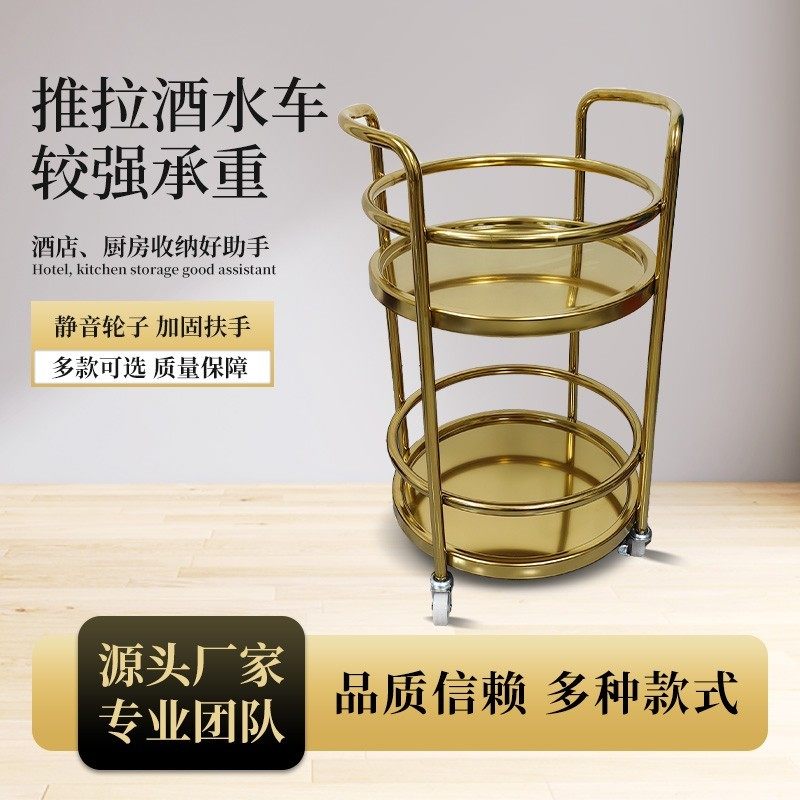 圆形双层酒水车简约可移动手推餐车酒店餐厅棋牌室KTV承重强轻奢