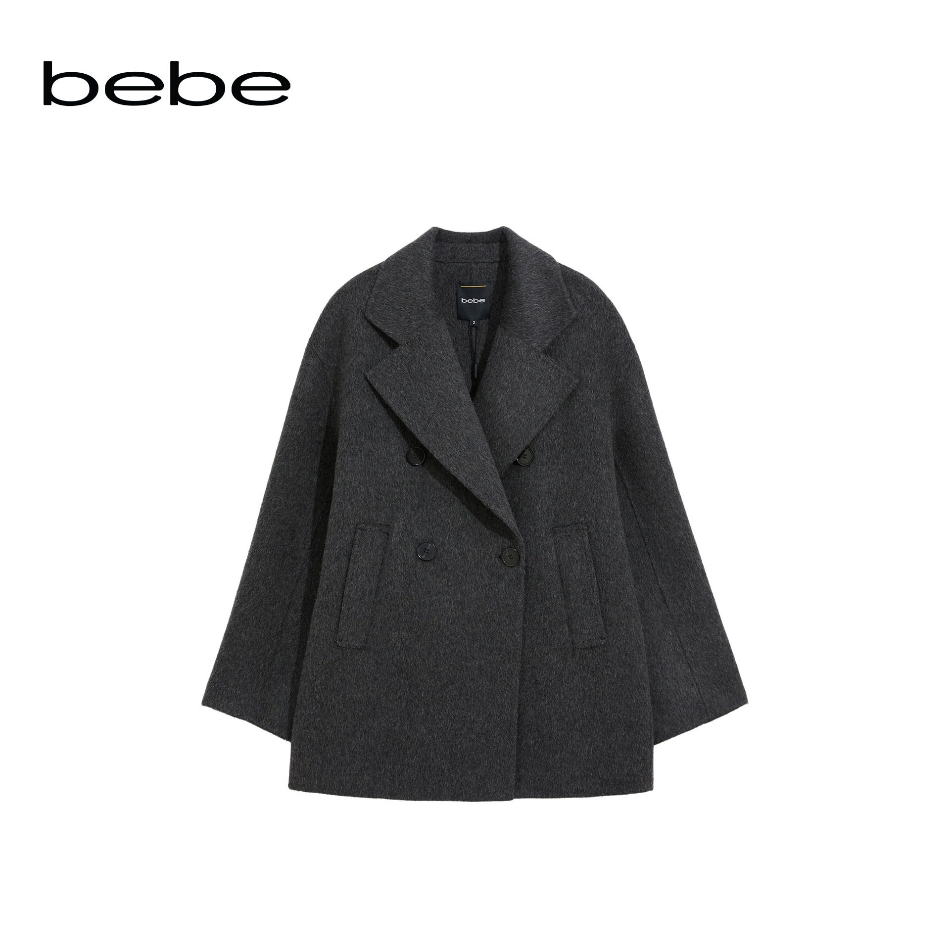 bebe冬季 472201 系列女士含羊毛休闲口袋双排扣大衣外套围巾套装