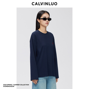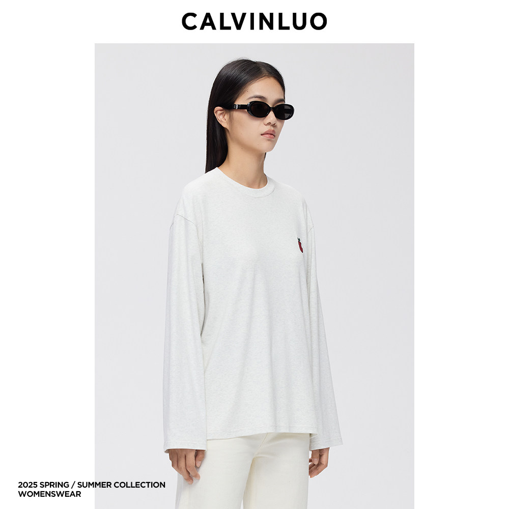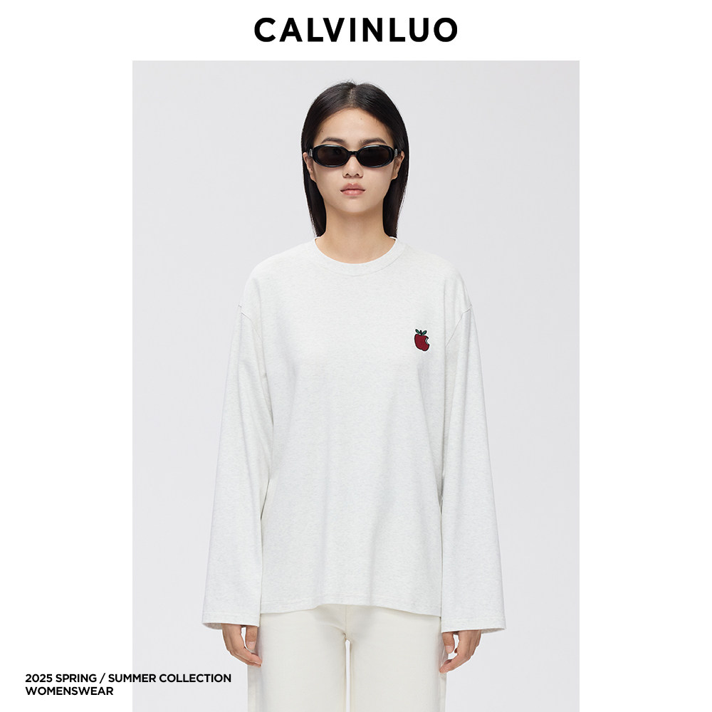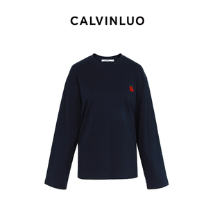 灰色 CALVINLUO 25SS新品 T恤 藏青色 苹果刺绣长袖