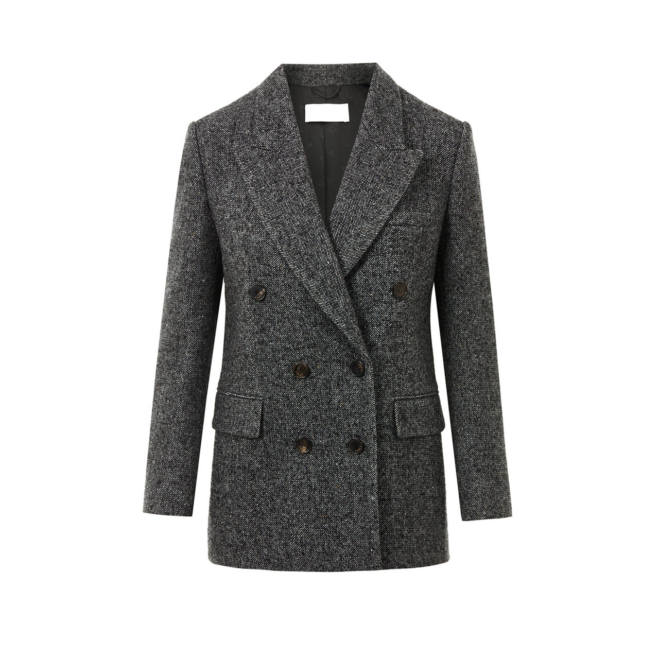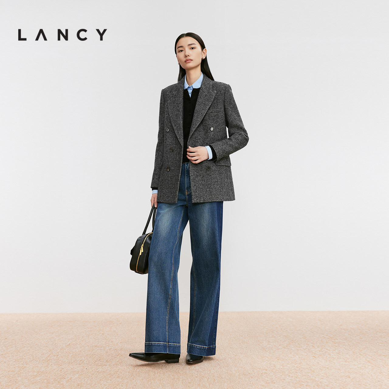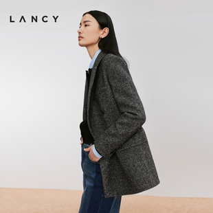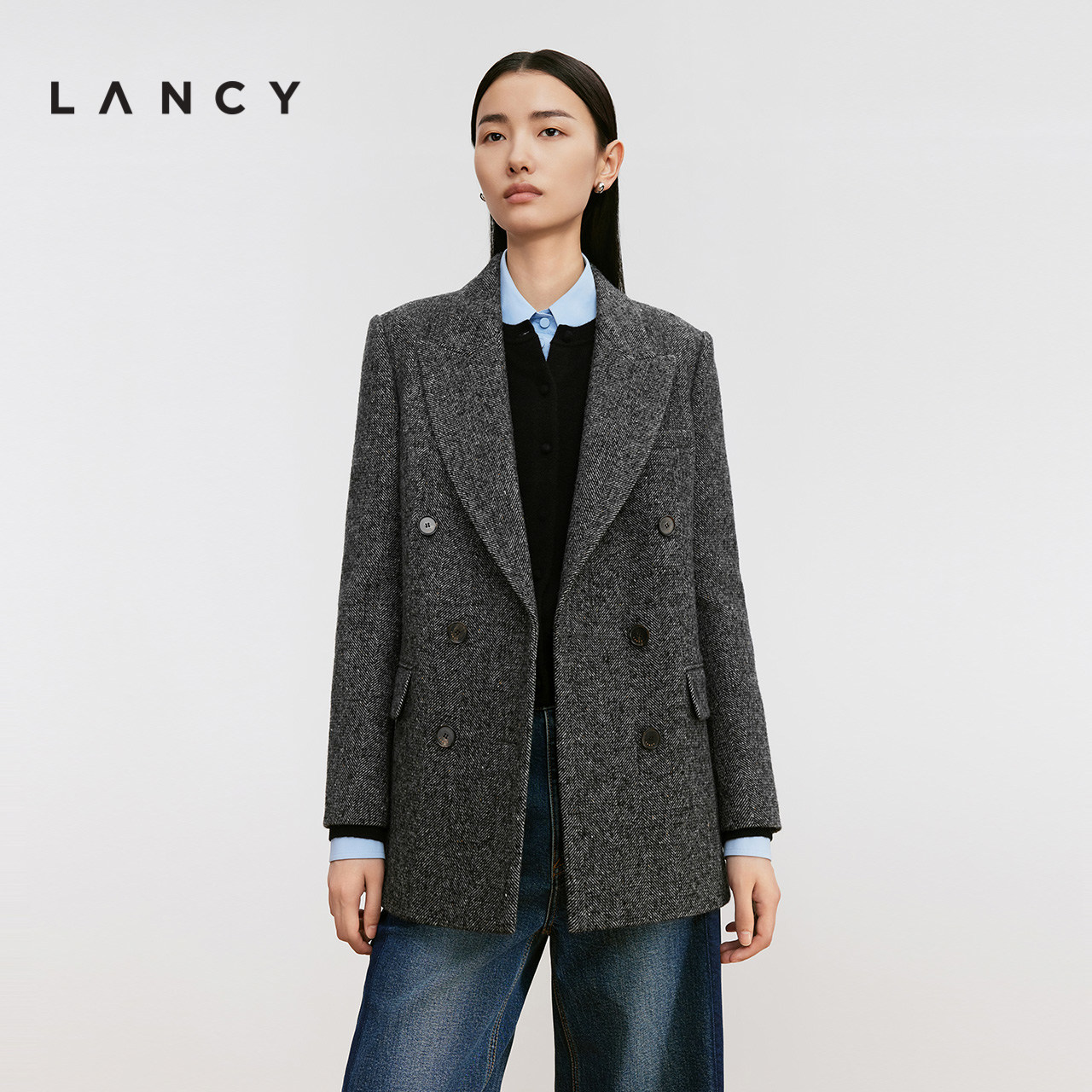 毛呢外套女高端通勤短款 羊毛双排扣西装 大衣 朗姿2024冬新款 LANCY