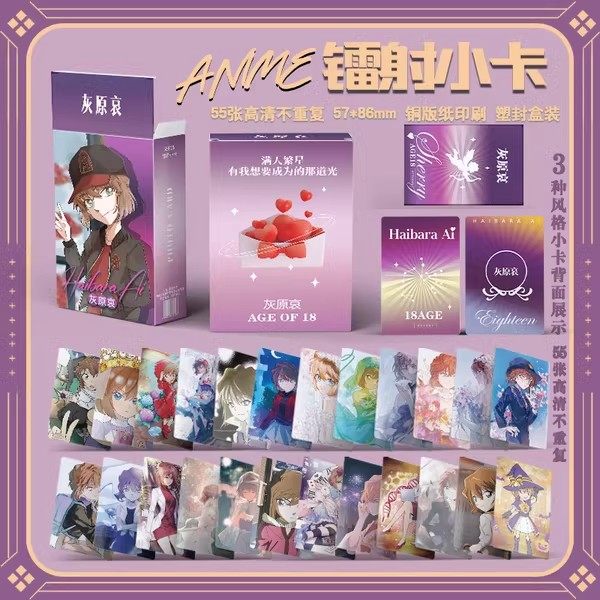 名侦探柯南灰原哀周边系列套装 镭射票吧唧钥匙扣小卡明信片同人