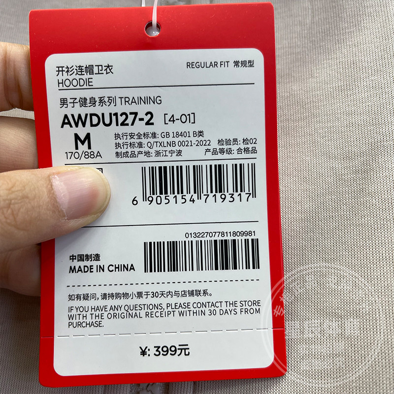 李宁男子外套2024春秋新款 连帽卫衣AWDU127 健身舒适休闲运动开衫