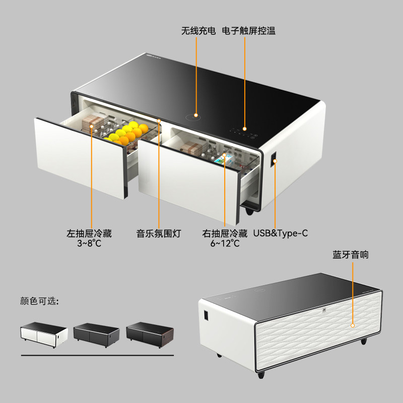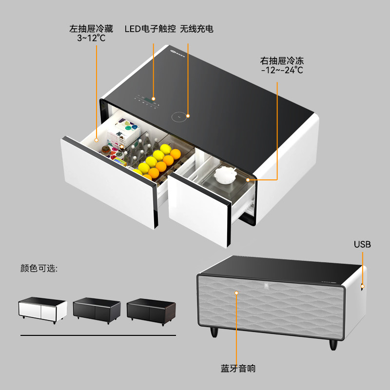 普利斯特功夫茶几带冰箱一体家用商务多功能智能家具 白色茶几