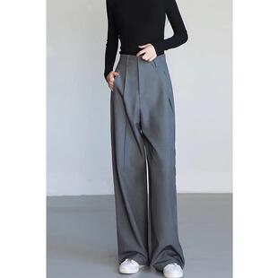 直筒拖地长裤 女高腰垂坠感 灰色长裤 女24春新款 西装 包邮 阔腿裤